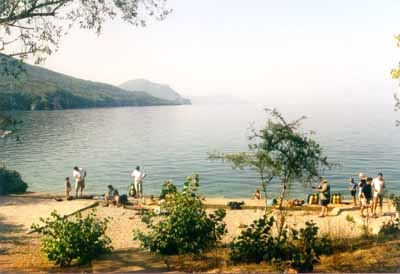Une plongée à quatre nationalités dans un lac-frontière. Août 2000, république de Macédoine. Ce petit pays continental, situé au sud-est de ce qui fut la Yougoslavie est situé en plein cœur de la péninsule balkanique. Et pourtant…. Lac d'Ohrid, 695m. d'altitude. Sur l'autre rive, l'Albanie se reflète sur la surface, miroir immaculé que nul clapot ne vient rider. Ici, au soleil et dans l'eau à 24°C., nous avons tôt fait de donner la mesure. Ici, au régime du langage des signes, finis les problèmes de communication. Tout le monde parle la même langue, oubliés les problèmes de compréhension, de traduction, d'interprétation. Le voilà de retour, triomphal, une belle couleuvre à la main. Quelques clichés immortalisent la scène. Nous terminons la plongée par la visite de « Micograd », la ville de Mico. Cette cité lacustre antique est l'un des principaux sites archéologiques sous-marin de Macédoine, actuellement en cours de fouilles dans le cadre d'un chantier national. Et on comprend pourquoi : par trois mètres de fond, les poteries foisonnent. A l'heure où j'écrivais ces lignes, alors qu'une nouvelle expédition, prévue pour aout 2001, était sur pieds, un conflit armé éclatait en Macédoine. Quelques soixante ans après les ambitions d'un petit brun moustachu germanique, la bête immonde vit toujours…Aujourd'hui, c'est plus le silence que le bruit des bottes qu'il faut craindre. |