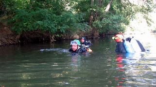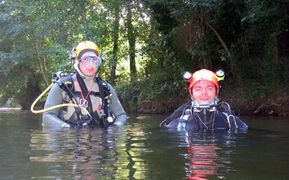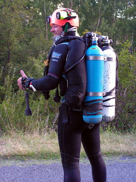 J'ai commencé la plongée subaquatique il y a un an et demi environ, je pratique en club en Normandie. La plongée souterraine, comment je me suis fais piquer ou comment ais-je attrapé le virus ? Je faisais des recherches sur le net, sur la plongée et je suis tombé sur des articles de plongée spéléo. Tout de suite cela m'a alerté par le matos que les mecs utilisaient ! On aurait dit des astronautes ! Le côté « exploration » me semblait prendre son véritable sens dans cette discipline, à la lecture des articles, la technicité, le côté un peu « tribal » de l'activité et des personnes qui la pratiquent, la condition mentale encore plus exigeante… J'étais vraiment attiré par l'ensemble ! (Je sais que ce n'est pas le seul en la matière…) Mais son record du monde de profondeur m'intriguait et je souhaitais rencontrer le personnage. Je lui ai envoyé un mail et il m'a rappelé carrément ! Je ne pensais pas qu'il était autant disponible vu son emploi du temps…On a pas mal discuté, j'étais encore niveau 1 fédé et je m'entraînais pour mon niveau 2 que j'obtins par la suite. Alors, on cale le week-end avec Pascal en septembre 2007 et je motive quelques potes de mon club pour un stage d'initiation à la plongée spéléo : finalement, on est cinq à partir ! On taxe le camion du club et nous voilà parti tous ensemble dans le Lot. Mais déjà, dans ma tête, je prenais ce stage plus comme une première étape dans le processus de formation qu'un stage de découverte…Je sentais que ça allait me plaire mais fallait que j'essaie pour en être certain ! Le stage se déroule sur 3 jours complets et au total on est un groupe de 12 à suivre la formation ! 2 élèves par moniteur. Tous les matins, on voit les cours théoriques et la pratique mais à terre ! Ce que j'ai trouvé excellent pour apprendre à se familiariser avec le matériel et commencer à manipuler. La première plongée du vendredi, direction la vasque de St Sauveur ! Le site est magnifique ! Ce qui me séduit littéralement, c'est le fait de s'équiper à moitié dans les bois pour aller plonger ! D'habitude, c'est sur un bateau en mer… Je plonge avec Sonia (qui au passage est absolument ravissante…) mais on ne pénètre pas dedans…on reste à l'extérieur à dérouler du fil et progresser avec etc…Donc pas un franc contact avec le monde souterrain. Ceci dit cela permettait de se faire la main avec la wing, le bi, le dévidoir etc…C'était ma première fois avec tout ce matos sur le dos ! Donc on va dire une approche en douceur… Le lendemain, les choses sérieuses commencent…direction l'émergence du Ressel. Le site est toujours tout autant séduisant, une petite route qui longe la falaise comme ça rappelle un peu les gorges du Tarn, les vacances…Seulement Joël (Joël PRAX) est là pour nous rappeler le déroulement de notre future plongée et je dois dire que cela nous a replongé dans le vif du sujet… Au programme, progression jusqu'au « Y » maximum (environ 180m je crois) et au retour un petit exercice : simulation de perte de fil avec la technique du lasso. On s'équipe, on se met à l'eau, on palme en surface sur quelques dizaines de mètres jusqu'à apercevoir un fil d'ariane amarré sur un arbre au dessus de la surface et qui plonge dans l'obscurité…Jusque là tout va bien, on amorce la descente, je ne sais pas à quoi ça ressemble, on est le dernier groupe à partir, et lorsqu'on arrive devant l'entrée, un mur de touille ! Les copains qui étaient passés devant… Tout à coup, le stress monte d'un cran, je ne lâche pas le fil, je colle de près mon pote Romuald, je ne le vois pas, je distingue à peine le bout de ses palmes et là je me dis, tu ne le perds pas de vue, tu lui colles au train !!! C'est comme ça sur quelques mètres et enfin, soulagement, délivrance, on y voit clair !! Impressionnant ce changement radical de visibilité ! Lorsqu'on se reprend un peu en arrivant à l'intérieur, mon cœur bat la chamade ! Je me calme, reprends un peu mes esprits…mais quelle entrée en matière ! Nous voilà parti tranquillement dans le Ressel, le spectacle qui s'ouvre devant moi est extraordinaire ! J'en reviens pas tellement je trouve ça beau ! A ce moment là, je ne voudrais pas être autre part que dans le Ressel avec mon casque et mon bi sur le dos !! On arrive au « Y » qui signifie qu'on doit faire demi-tour…J'aurai bien continué encore un peu voir beaucoup même…J'me sens trop bien, j'ai du dialogue interne, j'me sens euphorique…un début de narcose ??? NON, seulement trop content d'être là punaise !!! On est sur le retour, je prends bien soin d'alterner mes détendeurs afin de conserver la même conso dans chaque bloc ! A 50m de l'entrée, les autres avant nous ont fait des exercices…Et nous voilà encore face à un mur de touille mais ce dernier m'impressionne moins que le précédent… On pénètre dedans, on stoppe la progression à environ 40m de l'entrée et là Joël me fait signe de ne pas bouger et de ne pas lâcher le fil. Ce dont je m'attèle avec vigueur… Il prend Romuald avec lui et ils s'évanouissent dans la touille, je ne les vois plus du tout…ils sont partis faire l'exercice du lasso ! (on avait été brieffé, on ferai l'exercice les lumières éteintes, le masque retiré, les yeux fermés, enfin fermés ou ouverts, là ça changeait rien…) Et là, d'un coup, je prends conscience que je suis seul, dans la touille…alors j'me suis dit, puisque je n'y vois rien, j'vais éteindre les lampes de mon casque pour voir un peu ce que ça donne : clic clic, je suis dans le noir maintenant ! Lollllllllllllllllllllllllll Et j'ai attendu comme ça un certain moment qui m'a paru assez long tout de même… Il me semble distinguer une lueur, oui, les voilà qui reviennent vers moi ! C'est à mon tour ! C'est parti ! J'éteins mes lumières, je retire mon masque, et Joël qui m'avait indiqué un point d'amarrage me surveille de près,