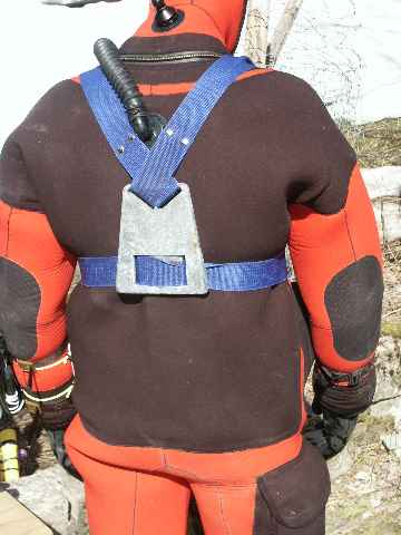 se trouve écrasé entre les bouteilles et le dos du plongeur, mais