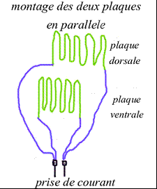 - Prendre le fil restant de chaque plaque et les raccorder ensemble à l'autre borne de la prise ( montage en parallèle )