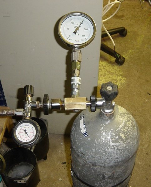 Le manomètre de nos compresseurs n'est pas un modèle de précision et il est parfois fastidieux de devoir arrêter le gonflage pour mesurer plus précisément la pression de la bouteille.