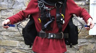 Diverses adaptations du harnais DiveRite existent pour plonger à l'anglaise ou en déstructuré. La plupart consiste en une inversion du montage: la wings est montée à l'intérieur du harnais = entre le plongeur et le harnais. Dive Rite le proposait sur son site auparavant (le lien a semble-t-il été supprimé). Le choix a été fait ici de laisser la Wings à l'extérieur (= pas entre le harnais et le plongeur) : ainsi, on n'est pas comprimé quand on la gonfle et l'on peut passer en configuration dorsale sans avoir a démonter/remonter le harnais. Ce montage a été utilisé avec divers blocs, jusqu'au bi12 avec 2 relais 7,5l et semble satisfaisant -une configuration plus lourde demanderait par contre à être testée. SANGLAGE WINGS (Wings modèle Rec) -photos 1 à 4 : Sanglage ventral de la wings (pour éviter qu'elle ne flotte librement et ne puisse être purgée ou ne s'accroche à toute aspérité). -Une fixation du haut de la wings a été utilisée (photo 5) mais ne semble pas nécessaire ; elle a donc été éliminée.