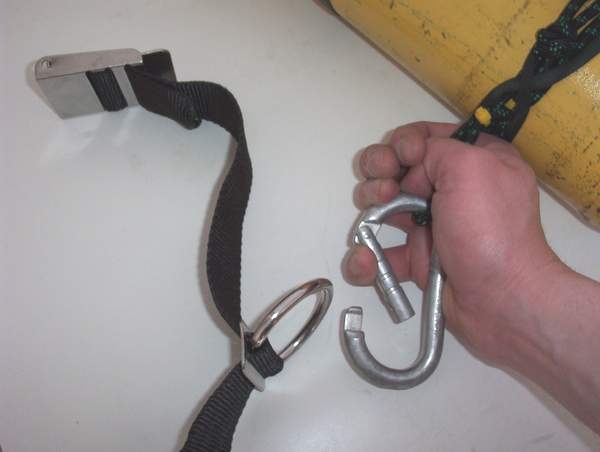 Ce type de portage des bouteilles est dédié aux siphons courts et étroits. Le principal intérêt de cette configuration est de permettre d'attacher et de détacher facilement les blocs. On ne peut pas utiliser le harnais et la bouée habituelle car le passage où il faut entrer est trop petit. On utilise alors une ceinture spéciale. Les blocs sont accrochés à deux endroits : à la taille sur une ceinture, et à la poitrine.