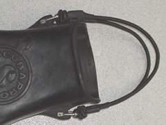 A l'usage, outre les avantages de ce système (compact, robuste, simple, solide), on apprécie, dans les progressions " multi-siphon ", la facilité à accrocher ses palmes sur un mousqueton. Lorsque cette opération est fastidieuse (avec des sangles larges) et qu'il faut la répéter souvent, on apprécie de se simplifier la vie. Le diable est dans le détail.