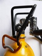 J'y ai rajouté deux petits anneaux à droite et à gauche pour l'accrochage au baudrier (harnais ou portage a l'anglaise) ou autres applications encore (voir photos).