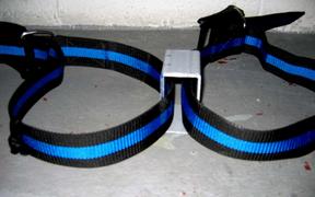 On a penser à prendre deux morceau de poutre rectangulaire (ici en fibre de verre, mais alu ou inox sont également possibles) de 6 cm de long et suffisamment large pour laisser passer la sangle en longueur.