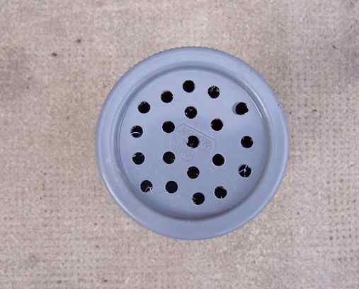 - Sur les bouchons, percer des trous diamètre 8mm, coté expiration sur le demi cercle supérieur ( le bas pour piège à eau ) et coté inspiration entièrement ( le même nombre de trou de chaque coté, c'est pour ça que coté expiration ils sont plus rapprochés.