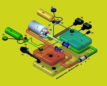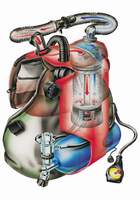 A partir du moment ou l’on considère le recycleur comme un " prolongement mécanique " de l’appareil respiratoire, le partage du même appareil par plusieurs utilisateurs ne doit s’envisager qu’après une désinfection complète et systématique de la boucle respiratoire. Cette désinfection se réalise à l’aide de produits appropriés. Elle demande de la minutie et un peu de patience. |