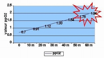 6 mètres (ppO2 max. = 1,6 bar). Remarquons qu’il n’y a aucune possibilité pour