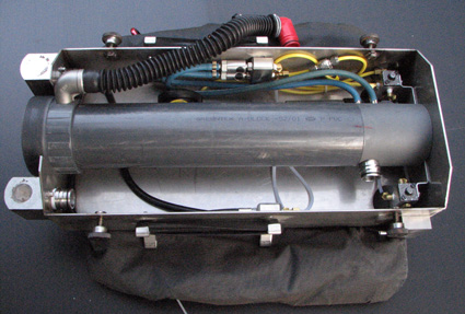 L'objectif était de concevoir et réaliser un recycleur CCR dorsal robuste, adapté à la plongée souterraine. Le principe de fonctionnement est un circuit fermé, basé sur le principe d'injection continue d'oxygène de type "KISS". Description: Le SOURIC intègre ses composants dans un caisson métallique: Canister, faux-poumons, mais aussi et surtout les vannes d'injection d'O2 et diluant, augmentant ainsi la fiabilité en éliminant tout risque d'endommagement des flexibles lors de franchissements de passages étroits.