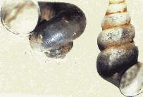 La plupart de nos gastéropodes aquatiques troglobies7 appartiennent à la famille des Hydrobiidés8, largement répandue dans les sources et ruisseaux d'Europe. Il s'agit de gastéropodes, donc de mollusques, appartenant à la sous-classe des Prosobranches 9 qui rassemble la très grande majorité des "escargots" aquatiques, de mer ou d'eau douce. Pour les amateurs de détails, ce sont des Mésogastéropodes10 qui n'ont conservé, par suite de l'enroulement, qu'une seule oreillette au cœur, une seule branchie, un seul rein...