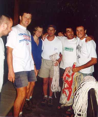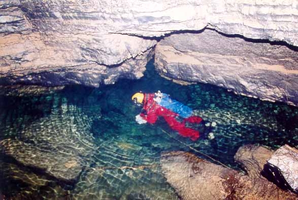 La Mairie de VENDARGUES , le club Exploreurs , le Club Spéléo des Pompiers de Grenoble-Seyssinet , l'association Ganeko , le Spéléo Club de la Gardonnenque , le Comité Départemental de Spéléologie du Gard. Luigi CASATI , Marcel MEYSSONIER , Edith MAREK-LIMAGNE . Enfin, merci aussi et surtout à la Fédération Bulgare de Spéléologie pour son accueil exemplaire : Alexey JALOV , vice-président, Nina et Trifon DAALIEV , secrétaire général, Plaman PETKOV , administrateur et président du club de Vratsa, Krasimir PETKOV , plongeur du club de Pleven. Summary : « Bulgarie 2001 » expedition Pays: Bulgaria Dates: from 1st to 22 august. Ezeroto ( Dolno Ozirovo ) : Down to a short galery, sump is dryed . A constriction looks like man-made closed by mud. Behind it is still mud. Toplya ( Malka Zhelyazna ) : Strong spring already known for 180 m in 3 x 5m. gallery until –22.. Unfortunately, very low level reduce visibility to zero. T°=6°C. Glava Panega ( Panega) : Biggerst srping of Bulgaria known about 260m (-51) was main target of expedition. But a foactory for drinkable water recently used that water. It was not possible to obtain autorizations for diving there. Can be a main target of another expedtion in case of authorization. Medjata dupka (Lutadjik) : 40 minutes walking to reach 50 of little gallery until the sump, a narrow channel explored about 17m until –8,5m. Sokolska jama (Lutadjik) : One hour walking until entrance and 600m away entrance sump is dived about 75m until boulder choke at –17. Izvor Sokolska (Lutadjik) : Spring of upside cave. Fault closed by boulder choke at –3 (5m). Chernija Izvor (Glavatsi): Spring with upside gallery. S.1 (10m ;-2) followed by 30m of nice gallery (flowstone) S.2 (15m;-4) followed by 90m of narrow channel where équipment can't be carried backside. S.3 (82m;-13) and just after S.4 (5m;-1). After, a fault is explored about 100m, still going on, but must be explored with caving clothes. Jabokrek ( Chiren ): Surgency of Ponora. The two caves are connected by a muddy but comfortable sump (240m;-2). Ponora ( Chiren ) : Magnific ponor ancient show-cave. We visit and photography for 2300 m. . Grgjuva dupka (Zgorigrad) : 400m of gallery and river until a narrow sump (45m ;-6). Dushnika (Iskrec) : Strong temporary spring (20m3/s hight water) dived until 100m from entrance (-7). Stopped on a broken place with several air-bells. A low-ceilling channel, 30m from the entrance, explored during 20m at the end of expedition looks like being the stream place. Temnata dupka (Lakatnik) : Magnific known-cave of Bulgaria whose last sump is 800m away from entrance. It was dived for 240m (-20), until a narrow boulder choke with several constrictions. Kalna Matnitza ( Glavatci) : Spring used for drinkable water with cave above water. First sump was dived during 15m after digging until constriction. Ledenika (Vratsa) : Very nice show-cave. Moreover exploration, we worked for collecting animals samples in caves and sumps, realizing some photography in caves and sumps, and answering for interviews for national radio. pecial thanks to : Societies TORRO, STRADAL, Point P, BEAL, ISOVER, Marbrerie artisanale, Imprimerie Centrale, S.B.C.M., DEWALT, Vieux Plongeur, TOPSTAR, Euromer et 3A Location. La Mairie de VENDARGUES , le club Exploreurs , le Club Spéléo des Pompiers de Grenoble-Seyssinet , l'association Ganeko , le Spéléo Club de la Gardonnenque , le Comité Départemental de Spéléologie du Gard. Luigi CASATI , Marcel MEYSSONIER , Edith MAREK-LIMAGNE . La F.F.E.S.S.M . (C.N.P.S.), la F.F.S . (C.R.E.I.), U.B.S., S.S.N., A.D.E.P.S. Moreover very best thanks to Bulgarian Fédération of Spelelogy for its marvellous welcoming and efficient cooperation : Alexey JALOV , vice-président, Nina and Trifon DAALIEV , secretary, Plaman PETKOV , administrator and president of Vratsa caving group, Krasimir PETKOV , cave-diver from Pleven caving group.