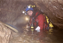 Au départ du siphon terminal de Temnata. Photographie Gordan POLIC.