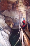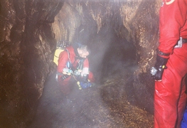 Marc : « La route pour se rendre à l'endroit où nous devons abandonner les véhicules est en assez mauvais état et, de plus, divers chantiers sont en cours ce qui nous fait perdre pas mal de temps. On est s à pied d'œuvre une heure plus tard. Plaman nous indique le thalweg dans lequel doit se trouver « Medjata ». Les recherches commencent vu que Plaman n'est pas très sûr de la localisation précise de l'entrée. C'est finalement Marc qui trouve le trou tout en haut du torrent temporaire. C'est une petite ouverture ovale de 1.5 m x 0.75cm. Une chauve-souris occupe manifestement l'endroit. On jette une pierre, mais aucune trace d'eau n'est perçue. Boubou décide de malgré tout de tenter sa chance. Il trouve l'eau à un niveau plus bas que prévu, mais renonce finalement car il découvre des traces de recherches (tuyau et câbles). Pour « Sokolska », la grotte est atteinte après une heure de montée à travers bois. Le dénivelé est relativement important et nous perdons pas mal de temps en recherches. Il nous a fallu essayer plusieurs talwegs avant que Plaman et Frank ne trouvent le bon passage. Intéressante tout de même, la découverte de deux très vieux phénomènes karstiques, deux salles en fait, très concrétionnées qui pourraient avoir été deux anciennes sorties d'eau aujourd'hui colmatées par le concrétionnement. En montant, nous passons d'abord devant « Izvora », la petite source temporaire située 60 m. en dessous du porche de « Sokolska ». Déception: l'ouverture est minuscule et nécessite, au moins, une petite désobstruction à la main. Roger est donc contraint de renoncer à sa tentative et se joint au reste de l'équipe. Pour la grotte, on mettra une heure à atteindre le siphon situé à 600 m de l'entrée. En effet, l'itinéraire est agrémenté de deux ressauts de quelques mètres et d'une étroiture, le tout sans réelles difficultés. Roger, en short et tee-shirt, déguste un maximum, mais persévère. La vasque est atteinte vers 14.00hr. Marc se met à l'eau sans tarder. Gordan prend quelques clichés pendant que Plaman junior tourne avec sa caméra personnelle. La plongée est courte (10 min.). Marc a déroulé 60m avec arrêt sur rien à -15m. Comme il n'est pas un spécialiste du fond de trou, il préfère en rester là car la visibilité est pratiquement nulle au retour à cause d'importants dépôts d'argile. La suite est évidente: tout droit. Le siphon débute plein Est et tourne ensuite vers le Nord. Arrêt devant un gros bloc. Retour en arrière sur quelques mètres pour trouver un point d'amarrage au point 55 m. Curiosité: la présence dans le siphon de plusieurs vers ressemblant à des lombrics. On quitte le siphon à 15.40hr. Nous arrivons au minibus vers 17.30hr. On récupère la voiture et, sur le chemin du retour, Plaman et Krasimir nous paient un pot dans un petit café de village. Fin d'après-midi, Boubou va jeter un oeil dans la source qui se trouve à côté du camp. Il s'arrête devant une étroiture. A revoir. Le portage et la mise à l'eau sont faciles. Il y aurait aussi le siphon situé au bout du réseau à voir. Celui-ci, selon Alexey serait un regard sur l'actif.» Boubou : «D escente dans la vasque dont le fond est un éboulis ,tête en avant, bi-5 aux côtés. Erreur de jeunesse! Pas le bi-5, la tête en avant?! Le laminoir, tentant, trop tentant, s'ouvre à moi. Je m'y engage fissa sans me rendre compte qu'une partie de l'éboulis me suit. Arrêt sur blocage par blocs et raclage dos-poitrine. Petite désob en marche arrière puis retour près des copains... » Pensée du jour : « Pour plonger bouteilles aux côtés, il faut virer les culs! Voilà comment on est passé à l'Euro, on a viré l'Ecu. » Marc raconte : Tout là-haut sur la montagne... « La plongée spéléo se divise en deux grandes activités : la plongée « résurgence » qui permet de parcourir des siphons, parfois longs et profonds, dont l'accès, aisé, permet d'amener tout le matériel désiré ; et la plongée « fond de trou » dont les siphons sont situés à l'extrémité réseaux souterrains parfois difficiles et qui, par la force des choses, nécessite un équipement ultra-léger et une technique de plongée adaptée en conséquence. A -15, le siphon fait un brusque coude et se dirige maintenant plein Est. La profondeur se stabilise. Je progresse encore de 20 mètres. J'arrive dans une zone de blocs. Je survole le premier et constate que la galerie amorce un nouveau cran de descente. J'ai vue jusqu'à -17. Equipé comme je le suis, il ne serait pas prudent d'aller plus loin. Je m'arrête, à –15 m de profondeur, à 65 mètres de mon point de départ comme me l'indique la marque sur mon fil d'Ariane. Je cherche un point d'amarrage qui facilitera la tâche de celui qui, chanceux j'espère, viendra ici après moi. Rattrapé par la touille que j'ai soulevé, je n'ai pas le temps de mettre la main sur le fractio convoité. Je rebrousse chemin et, vers le point « 55m », je mets la main sur un très beau rocher qui fera parfaitement l'affaire. Je n'y vois plus grand chose, aussi, c'est avec la plus grande prudence que je coupe le fil après avoir fait mon nœud d'amarrage. Je ressorts à tâtons. Toute l'équipe est là qui m'attend. Je prononce alors les deux mots magiques qu'ils attendent et qui, à chaque fois, nous font frémir : « ça continue ! » Ma plongée n'a pas duré 15 minutes et je n'ai parcouru que quelques dizaines de mètres d'un obscur siphon boueux, mais, j'étais en « première »; et ça, c'est une sensation irremplaçable, c'est le vrai moteur de notre activité, c'est pour ça que, à longueur d'année, nous nous entraînons, c'est ça qui nous a conduit ici, tout là-haut sur la montagne, à des milliers de kilomètres de chez nous, c'est ça qui, dans quelques jours, conduira à mon terminus un autre membre de l'équipe. Pour quelques inoubliables minutes, la « première » fait de nous plus que des plongeur