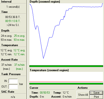 Toute la plongée ainsi que la déco, a été réalisée à PpO2 constante sur mes recycleurs CCR