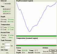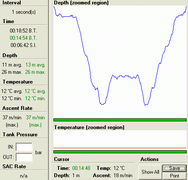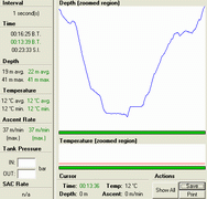 Le profil de cette plongée est un peu spéciale, avec un 1er siphon à 94m, le 2 ème à 42m et le 3 ème arrêt à 13m, qu'il faut refranchir dans l'autre sens pour rentrer