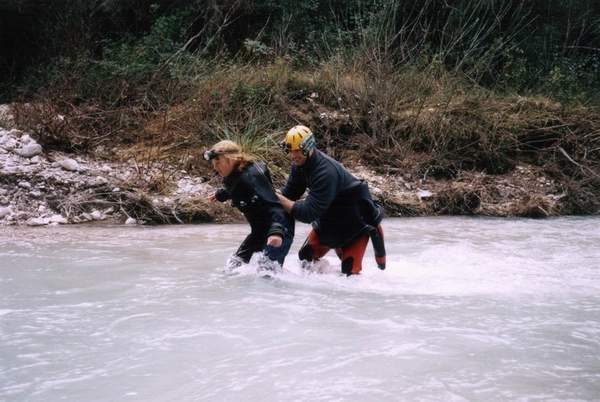 Le niveau de la rivière était plus élevé en décembre 2002 et le courant plus fort. A cette période de lannée, le niveau du Toulourenc était assez bas. Nous avons pu traverser la rivière avec notre matériel. Ahurissant ce quun 4 x 4 peut arriver à faire.