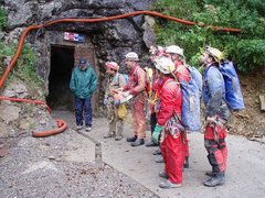 Le 17 et 18 Août 2007, nous avons enfin l'accès au Tunnel. Le GSHP reprend les explorations, aidé par la suite par le GSO. Le premier objectif, changer tout l'équipement jusqu'à la Galerie des Lacs. Le deuxième objectif, acheminer deux matos complets pour deux plongeurs.