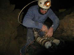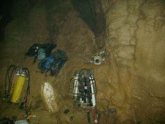L'exploration de la galerie des Lacs n'est pas terminée, bien au contraire, elle ne fait que commencer. Il fallait absolument changer l'équipement en place et acheminer le matos plongée au fond en sécurité. C'est chose faite.