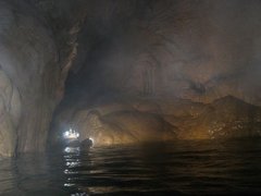 Les Lacs d'Arphidia sont bien alimentés par une arrivée d'eau. Mais laquelle ? Nous pensons toujours que cela vient par le dessous, par un siphon, sauf que nous n'avons pas encore trouvé le passage. La prochaine plongée aura lieu vers mi-décembre. Nous espérons trouver une réponse dans ce premier gros lac non exploré en profondeur.
