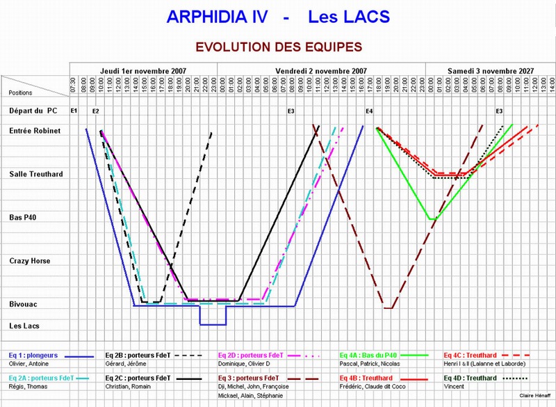 L'évolution des équipes pendant l'expédition du 01 au 03 novembre 2007 :