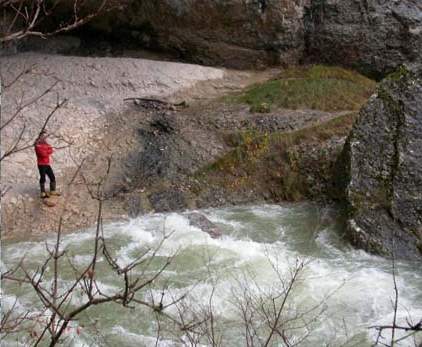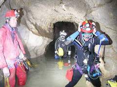 départ plongée dans le siphon terminal le 18-08-2002 (photo C. Kupiec) |