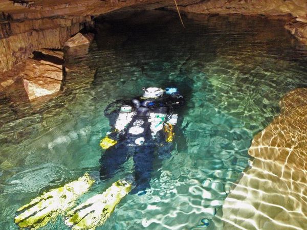 nuages laiteux stratifient le siphon. Je vois sur 3 ou 4 mètres. La