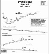 Le Spéléo club de la Vallée de la Vis et le Groupe spéléo du Vigan ont repris depuis quelques années l'étude et l'exploration des réseaux de la vallée de l'Arre. Les premières furent nombreuses et la plus belle a permis d'ouvrir la grotte de Calles, un petit bijou. Mais ces réseaux, attaqués par l'aval, se retrouvent rapidement bloqués par des siphons. Les explorateurs précédents, avares en informations et en topographies, ont contraint nos explorateurs à rechercher d'autres assistances. C'est dans ce contexte que je fus sollicité pour reprendre les plongées du siphon 2 de Bez afin de réaliser la topographie et de confirmer ou pas les théories élaborées sur la genèse du réseau. A ce jour, deux plongées ont pu être réalisées malgré la programmation d'une dizaine de sortie. Mais les conditions climatiques et techniques nous ont contraint d'annuler souvent. Depuis ma première plongée, le 23 juillet 2008, il aura fallu attendre un an avant de retrouver des conditions acceptables. Le 4 juillet 2009, je suis à nouveau à Bez, avec cette joyeuse équipe de spéléos acharnés. Qui dit siphon 2, dit siphon 1. L'essentiel de l'équipe n'étant pas plongeur et le matériel à transporter étant conséquent, l'équipe a opté pour le pompage du siphon. Démarrée la veille, la pompe permet de désamorcer en une vingtaine d'heures. Ensuite, le dernier plan d'eau est traversé en utilisant un câble inox où nous constatons qu'il ne reste que quelques torons. Même si la galerie semble horizontale sur la topographie, le portage jusqu'au siphon 2, environ 1 km, est particulièrement sportif. Jamais étroit mais toujours en diaclase plus ou moins large avec d'incessantes descentes et remontées. Il faut compter 2 à 3 heures de portage selon le niveau des équipiers. En revanche, l'arrivée au S2 est grandiose. La galerie prend l'allure d'un beau tunnel où serpente un petit actif sur un sol très travaillé par la corrosion : marmites, canyons, banquettes... et enfin la vasque du S2. Une pause est bien nécessaire avant de se mettre à reconstituer le matériel conditionné pour le portage. Afin de limiter le nombre de charges, 8 au total, j'ai opté pour une configuration un peu bâtarde que je regretterai.