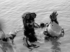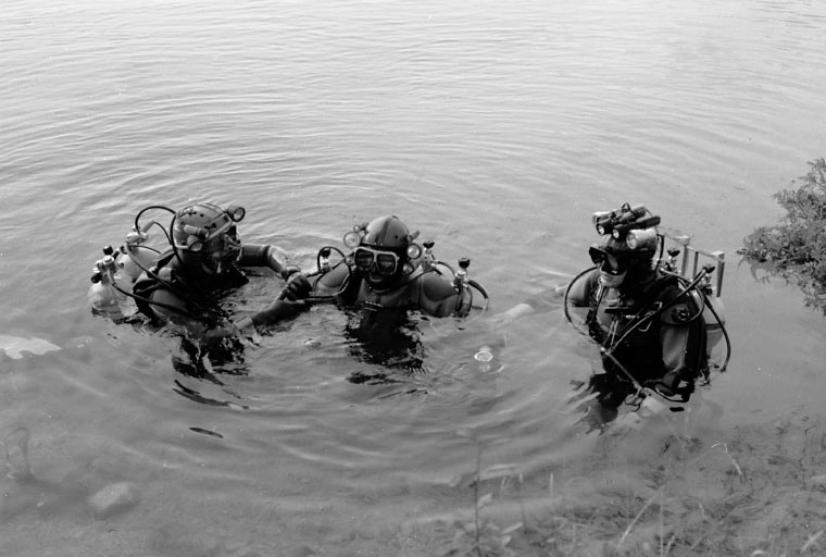 Remplaçant Cyrille, après le test d'une collerette “révolutionnaire” (étanche à l'eau et semi-étanche au flux sanguine !), j'y effectue une plongée le mercredi 10 octobre 1990.