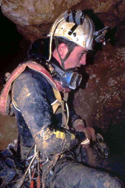 Nous décrivons ici les plongées du 16/04 et surtout celle du 18/06/94 (Cf. Récit d'époque de Yves Audouin, maintenant réfugié en Allemagne pour oublier). Passons en effet rapidement sur la plongée du 16/04, réduite à une reconnaissance plongée en lac à la verticale, puisque je n'avais pu monter qu'une seule des bouteilles que m'avaient prêtées JPStef avec mes détendeurs (mais merci encore à toi !), à cause de la forme des protections de robinetterie si je me souviens correctement avec 10 ans de recul… et n'avais rien vérifié avant de partir (erreur de jeunesse – c'était ma première plongée fond de trou pour ma défense) ; les valeureux porteurs auraient pu et dû me "pourrir" davantage qu'ils ne l'ont fait...