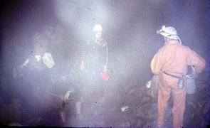 On s'était toujours dit « tu ne doit jamais avoir peur, si tu as peur tu paniques et si tu paniques… c'est la mort ». Pas plus compliqué, c'était notre devise. Bon en cet instant grave je me heurtais toujours à ce mur, le temps passait, l'air de nos scaphandres aussi. Je me demandais quels signaux Mickey envoyait aux autres. Je me disais aussi qu'Henri pourrait intervenir, mais s'il y avait eu un grave problème, tel qu'un éboulement, il n'aurait jamais pu nous rejoindre et il serait trop tard pour nous. Je ne pouvais pas communiquer avec Mickey dans cette « soupe » Aucune communication possible avec personne. J'étais le seul à pouvoir prendre une décision et vite. Je suis dit « Denis on est passé tout à l'heure, forcement le passage est quelque part » Il vaux mieux positiver dans ces cas !