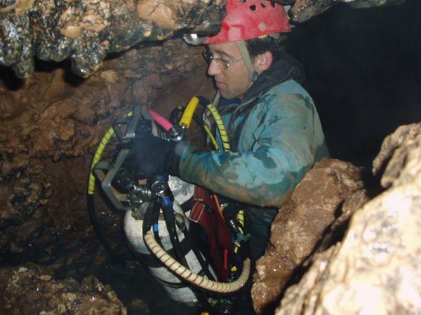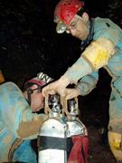 Le temps de déballer les onze sacs de matériel de plongée, d'assembler les scaphandres, d'équiper les bouteilles, de se parer des oripeaux et autres coquetteries de plongée assorties, le tout en avalant un ou deux sandwiches, et nous partons dans le S.2 (le S.1 est un autre siphon, situé dans la galerie des Ceps de Vigne).