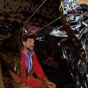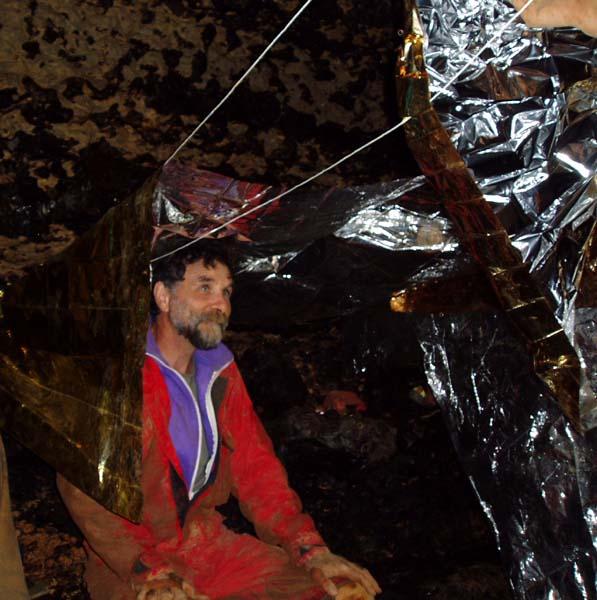Jeannot avait prévu entre deux et quatre heures de progression jusqu'à « la pissette ». Après 2h30 de cheminement, dans l'ambiance à la fois irréelle et grandiose d'amples galeries éclairées par un feston d'une vingtaine d'éclairages acétylène, nous voilà à pied d'uvre.