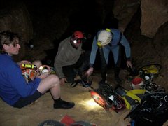 Dimanche matin, Emerick et Arthur espèrent trouver un siphon décanté pour profiter un peu du paysage, mais la visibilité n'excède pas 1,5m. Le site est déséquipé. Un montage des images tournées par Eric est visionnable (Quicktime requis) http://gallery.me.com/ee06/100287 Le siphon amont est dorénavant exploré sur 790m, arrêt à –57 après un point bas à –87 suivi d'une point haut à –30 et un développement à –40. La prochaine exploration se fera en solo du fait de la forte propension à la turbidité de la cavité, elle sera couplée à des prises de vues photographiques dans la branche descendante du siphon. Remerciements : Merci à