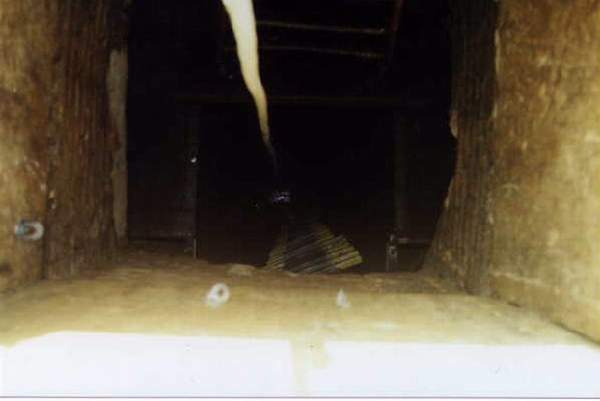 - Au cours de l’été 2000, une nouvelle série de 3 forages placés toujours plus en amont, permit d’assurer un pompage encore plus conséquent. Nous reconnûmes alors, à pieds secs, le laminoir et son siphon d’accès (L: 100 x l: 25 x h: 0,6) sur lequel nous avions échoués et de découvrîmes trois nouvelles galeries parallèles qui se développent sur un peu plus de 300 mètres et re-jonctionant en amont au niveau de la grande cascade et de la déviation.