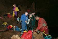 16h45: Le dernier sac et le dernier spéléo sortent du trou.