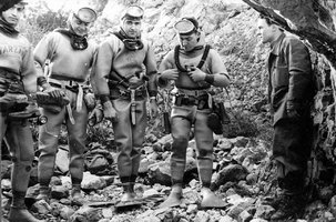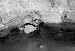 le 25-11-1956 franchissement en plongée des deux siphons, nous sommes arretés par une petite verticale de 6 mètres peu aprés l'amont du siphon n° 2.
