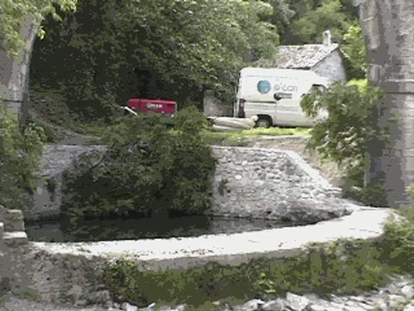 | Nous sommes le mardi 7 mai 2002 et notre association, les Fils d’Ariane, a décidé de profiter du pont de 5 jours de l’Ascension, pour réaliser la désobstruction du Grd Goul. Scaphandrier de profession, je dispose de toutes les compétences techniques et matérielles, pour entreprendre ces travaux. Plusieurs mois avant, j’ai pris contact avec la Maire de Bourg St Andéol, pour obtenir son accord, et aujourd’hui, j’ai rendez-vous avec les services techniques pour l’installation de notre matériel, qui se compose d’un compresseur de chantier, loué chez LOXAM, d’une suceuse de 150 mm de diamètre, prêtée gracieusement par ma société de travaux subaquatiques O’CAN et d’une benne à déchets, prêtée par la mairie. |