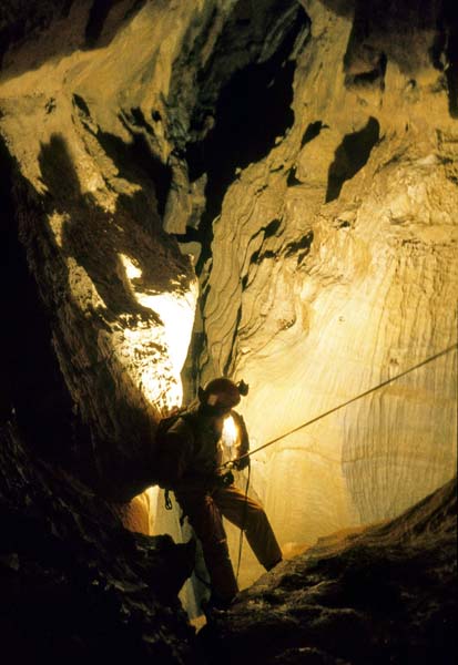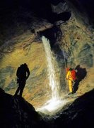 La Galerie du Chaos franchie, il faut alors progresser dans un canyon où l'eau stagnante contraint à de fréquentes immersions. A 5250m de l'entrée, on atteint enfin le terminus du S.C. Lyon, constituépar une cascade de 5 m qui en période d'eau moyenne oblige l'explorateurà une douche forcée. L'obstacle franchi, il faut escalader encore quelques courtes cascades et traverser des bassins parfois profonds qui jalonnent sur près de 600m le fond du méandre dont les dimensions restent invariables (2m de large et près de 20m de haut). Par endroit, quelques coulées stalagmitiques inopportunes viennent obstruer la galerie sur plusieurs mètres, contraignant l'explorateur à des escalades rendues acrobatiques par le port de la combinaison en néoprène. La plus importante, la Bareusai, ne mesure pas moins de 8 m et nécessite un minimum d'équipement.