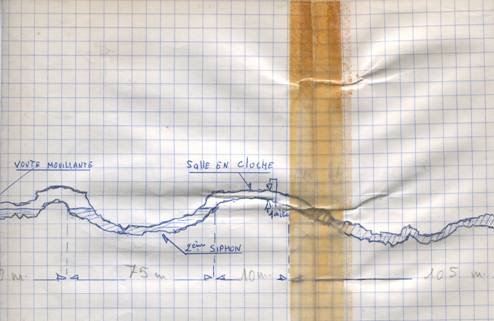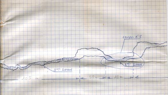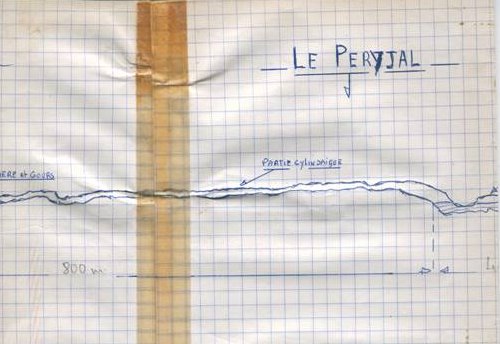 Le passage du 2 ème siphon nous amène près d'un 3 ème siphon. Toutes les galeries ont été topographiées. La mise à jour sur papier, nous faisons des recoupements avec les topos de Sauvas et de la Cocalière. Rien n'est simple, mais nous arrivons à comprendre notre progression et les liens qui tissent tous ces réseaux entre eux ! Le 3 ème siphon de Peyrejal est franchi. Nouvelles topographies des galeries et nous nous retrouvons devant un 4 ème siphon. Pas mal, on est très loin de tout dans Peyrejal !! A Lyon, nous mettons à jour, encore une fois, nos topos. Tout est sur papier et nous observons l'évolution de notre avancée : - Bien, on a un 4 ème siphon à franchir, disait Marcel, - Tout est près, les gars ! - On part pour les deux premières semaines d'août ! - On va avoir le temps d'étudier tout cela ! Nous sommes partis. Installation de notre camp de vacances et de travail, à la Font-Vive. VENDREDI 3 AOUT 1973 Le GRPS se réveille à 7 heures du matin. Comme d'habitude, certains sont réveillés par les autres. Ça fait la gueule et ça ronchonne un peu partout. J'oserais dire que des coups de gueules sont poussés ici et là ! Les copines ont préparé un petit déjeuner copieux et cela met tout le monde d'accord ! Vers 10 heures du matin, tout le monde est en place, l'équipe de soutien extérieur est là, prête pour une surveillance météo. Les spéléologues du SC des Vans sont déjà entrés par l'issue artificielle. Peyrejal est déjà équipé et nous entrons, toute l'équipe. On sait que l'on va passer plusieurs jours et nuits ici. Nos sacs de matériels sont pleins, tout est là et nous emmenons notre 2 ème dérouleur. Il nous servira pour plonger le 4 ème siphon. Passage du 1 er siphon, puis du 2 ème , le 3 ème , je passe sur les détails, c'était difficile. Nos lignes téléphoniques sont tirées et nous laissons des EE8 et une personne en attente, tout le long de ce réseau. Il faut rendre hommage aux copains qui sont restés en poste, en attente pendant des heures, voir même des jours ! Leur seule distraction, « bouffer » des aliments énergétique, cela passe le temps et utiliser le téléphone pour faire un brin de causette avec les autres ! Recharger en pierres de carbure le réservoir du casque est aussi un bon passe temps ! Nous sommes entrés dans Peyrejal : Henri P., Henri B., Bob, Guy, Marcel, Yves, notre Pépé chéri ! Daniel B., Serge et moi. Neuf personnes ! Au final, il n'y aura plus qu'Henri P., Pépé, Bob, Marcel, Daniel B. et moi. Dernier relais, tous les autres sont restés à l'arrière, seul Guy est là, avec nous, devant le départ du 4 ème siphon. Bon on va y aller ! On a la boite topofil, allons-y, il faut tout topographier ! Il faut dire que nous avions perdu la notion du temps. On avait quelques nouvelles de l'extérieur, la sonnerie des EE8 tintant parfois. Guy allait rester ici, au dérouleur. C'était notre dernière chance de réussite. Si nous ne trouvons rien de nouveau, il faudrait revenir, en se donnant d'autres moyens ! En attendant, on ce préparait pour plonger ce 4 ème siphon : « On va partir, Henri, Bob et moi, disait Marcel, Ok, dans 3 minutes on vous rejoint, Denis et moi ! répondait Pépé Ca marche, on y va, on verra bien !! Les copains disparaissaient dans ce siphon : On va attendre un peu, me dit Pépé. Oui, j'espère que ça continue plus loin ! On a nos sacs « texair » avec nous, on verra bien ! En fait, on était perdus dans nos pensées ! Siphon franchi les gars ! nous dit Serge. Ok ! Ils confirment et demandent une liaison téléphone ! Serge basculait en liaison vocale, abandonnant, momentanément, le visuel. Allo ? Ok, je te passe Pépé ! Oui, comment va ? demandait Pépé Conversation, je ne savais pas ce qu'ils se disaient. On vous rejoint Denis et moi, à tout de suite ! On y va ? Ouais, ça continue derrière ! Et bien on va y aller ! Allez les gars, nous dit Serge, bon courage ! » On s'est engagés, Pépé devant moi. Nous étions sur mousquetons coulissants, sur le fil d'Ariane. La profondeur n'est pas importante, une moyenne de 18 mètres. C'est la longueur du siphon qui impressionne ! 200 mètres à franchir, dans des conditions relativement peu difficiles. Nous avons débouché et retrouvé nos 3 copains. « Bon, salut les gars ! Bien, on y est, on a topographié le siphon, maintenant on va continuer ! Pas mal cette galerie ! Oui, on a à faire ! Ok, on continue et on topographie ! » C'est parti, la galerie est de bonnes dimensions. Notre problème, c'est de franchir des lacs et rivières. De l'eau jusqu'au cou ! A part ça, tout va bien et nous progressons assez vite. Nous n'avons plus de communication possible avec les équipes restées à l'arrière. Nous topographions 500 mètres de galerie. Et on se retrouve devant ce qui semble être un 5 ème siphon. « Bon, on va plonger là-dedans les gars ! Oui, on va y aller ! On n'arrête pas ! Rien ne nous arrêtera ! » On plaisantait un peu. Cela faisait des heures que nous étions engagés dans ce réseau inconnu. Quel jour on était, quelle heure dehors ? Bonne question, on n'en savait rien ! On se fichait éperdument de cela, on allait aller voir, passer ce nouveau siphon ! Présentement, on se trouvait devant ce qui semblait être un 5 ème siphon. « Va falloir s'organiser ! disait Pépé Oui, on ne va pas tous partir à la fois… Ok, le problème, c'est qu'on n'a plus de fil d'Ariane… Tant pis, on va se servir du fil topo ! Ok, qui va voir ce qu'il y a de l'autre coté ? » Nous étions tous volontaires, bien évidemment ! Daniel B. s'engage. Il disparaît dans l'eau, entraînant le fil topo avec lui. J'étais prêt à partir aussi, Bob derrière moi. Difficile de décrire ce qui se passe dans ces moments-là ! Je m'engageais à mon tour. Ce siphon est très court et j'arrivais vers Daniel. Nous étions dans l'eau, presque jusqu'au cou ! « Comment ça va, ça se présente bien ? Pas mal Denis. On peut continuer on 