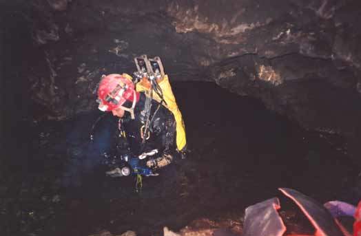 La saison hivernale 2003-2004 aura été l'occasion, au gouffre de la Poya, de planifier à la fois des remontées et des plongées. Sur 10 siphons recensés dans ce gouffre, seuls quelques-uns sont vraiment intéressants à plonger. Il y a incontestablement le siphon du fond, le S1. C'est la porte au fond du réseau. Cependant, nous sommes clairement sur une région noyée: le S1, le S3 et le S5 sont à la même profondeur. Un autre siphon intéressant est bien sûr le S7: c'est le terminus de la partie amont de la principale arrivée d'eau dans les « trivières ». Après plusieurs tentatives de vidange de ce siphon durant la saison précédente, il est devenu évident que la suite appartiendrait aux plongeurs. Le second intérêt de ce siphon est qu'il n'est qu'à deux heures de l'entrée pour une bonne équipe, à 240 m sous la surface. Première plongée La première sortie de la saison est donc prévue du vendredi 26 au samedi 27 décembre 2003, le thème principal en est la plongée du S7. Les participants sont: Patrick Deriaz, Alain Quiquerez, Vincent Berclaz, Philippe Moret (Phil), Rémi Heijn, Johnny Martinez (Jo), Denis Favre et moi-même. Nous partons de bonne heure, après avoir réveillé Jo qui venait de se coucher. Nous arrivons au parking de Flaine vers 10 heures du matin et entrons dans le trou vers midi, après maints coups de pelle. Rapidement, les puits s'enchaînent. Une équipe de quatre, Denis, Jo, Phil et moi-même, partons avec le matériel de plongée. Nous arrivons assez rapidement au bivouac puis au S7. Denis et Jo se relayent pour le bi-4 litres 300 bars qui est quand même lourd. Nous arrivons au siphon vers 15h00. Tous me donnent un coup de main pour préparer l'équipement pour la plongée. Vers les 16h30, je peux y aller. La galerie qui fait au départ dans les 2 mètres de haut et 2 mètres de large s'élargit assez rapidement pour atteindre dans les 4 mètres de large. Le sol est composé de cailloux alors que les parois et le plafond sont de la roche. L'eau est vraiment très claire, mais elle touille vite. Je repère assez vite un passage à gauche, dont je vois même une partie de la pente de sable qui arrive jusqu'au milieu de la galerie. Je continue la descente au milieu de la galerie, tenant le dévidoir à bout de bras dans la main droite. Les indicateurs posés sur le fil bloquent un peu au passage du guide fil, mais c'est supportable. Je fixe mon fil à l'aide d'un élastique au milieu de la galerie sur un gros caillou et continue la progression. Après quelques mètres, mon fil s'emmêle dans le dévidoir. Heureusement, ce n'est pas grave et ça se répare très vite. J'accroche encore le fil à un autre caillou, la profondeur augmente, je suis déjà à 8 mètres de profondeur et la galerie semble toujours descendre. Je continue, la galerie s'élargit sur la droite, une arrivée semble remonter en surface. La galerie principale continue, elle, sa descente. J'effectue donc un nouvel amarrage, à un point bas de 15 mètres, au milieu de la galerie sur un morceau de roche et pars dans la galerie de droite. A quelques mètres de l'amarrage, je croise un autre être insolite dans cette galerie, une planaire. Elle est posée sur le fond, elle se déplace sur de la roche à nu. Elle doit bien mesurer le centimètre et demi. Je commence la remontée au travers d'une langue de sable, je sens que cela touille très vite, je me dépêche en me demandant si je vais trouver de quoi fixer mon fil. Un petit becquet dans la paroi m'apparaît. Il semble avoir été taillé là pour que j'y pose mon fil. J'en profite donc! Là aussi, deux choix s'offrent à moi, continuer la remontée où prendre à gauche dans une galerie qui semble être parallèle à la galerie du bas. Je commence par la remontée, qui s'arrêtera assez vite, la pente de sable rejoignant le plafond. J'enroule mon fil jusqu'au dernier amarrage dans une touille complète, me demandant déjà si je vais pouvoir retrouver l'autre galerie. Arrivé au dernier point, je palme dans la direction ou je me souvenais avoir aperçu la galerie et rapidement je sors de la touille. Ouf, je suis dans la bonne direction. Je continue donc dans cette galerie, qui est de dimensions plus modestes que la galerie du dessous et plus haute que large. Je profite d'un nouveau becquet pour un autre amarrage et je reprends la route. Je passe un virage à droite et la galerie continue. Tout à coup, j'arrive en bout de fil. Ça tombe bien, j'arrive aussi au terme de mes tiers. La galerie, elle, continue et je regrette amèrement de ne pas avoir eu 10 mètres de fil de plus. Je coupe donc le fil et fais un nœud sur un becquet dans la paroi. Je sens les premiers frissons de froid qui me saisissent, l'eau est à 4 degrés. L'euphorie de la pointe terminée, les sensations de base telles que le froid reviennent. Je sais alors que je ne suis plus immortel (car comme tout le monde le sait, en pointe on est immortel). Je sors donc mon crayon et commence la topographie. Je peux inscrire les largeurs pour les deux premiers points topo, mais après je dois procéder de mémoire. En effet, les particules en suspension m'empêchent de distinguer les parois. Au cinquième point topo, le crayon fatigué décide de me lâcher. Je ne vais pas me laisser faire par un morceau de bois. Je le taille donc à l'aide de mon sécateur. Ce n'est pas vraiment l'usage de cet outil, mais cela me permet de terminer les points qui me restent. Je fais surface au bout de 28 minutes de plongée, déçu de ne pas avoir traversé. Le point bas du siphon est à 15 mètres, mais une branche continue à descendre. L'arrêt topo s'est fait à 83 mètres de l'entrée du siphon, à 4 mètres de profondeur sur une galerie qui continue à monter. Nous commençons à ranger le matériel lorsque la seconde équipe arrive. Cela tombe plutôt bien, car compte tenu de la plongée, tout le matériel peut ressortir. Vincent est d'accord pour prendre les bouteilles de