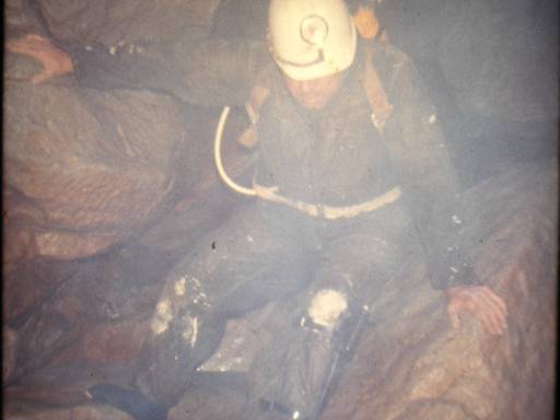 A l'intérieur de l'un de ces trous, j'ai juste eu le temps de voir, sur mon profondimètre, que j'étais à 40 mètres de profondeur. Ensuite, fini la vision. Le nuage de glaise, brassée par mes palmes, me retombait immédiatement dessus. Je pouvait évaluer les dimensions de cette galerie, tout simplement en me cognant de toute part dans les rochers. J'ai compris que tout devenait trop étroit. Je devais me trouver à plus de 40 mètres de profondeur, plus de 30 minutes de plongée. J'avais du mal à voir mes instruments, c'est vous dire ! Cette fois, il fallait que j'arrête. J'ai bien compris qu'entre l'exploration d'Henri, avant moi, et celle que je venais de faire, tout semblait impossible ici.