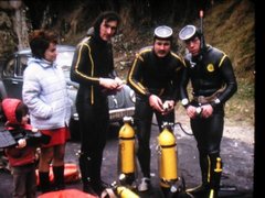 Nous avons plongé et passé le 1 er siphon. Marcel, Bob, Pépé, Serge, Daniel B., Henri B., Henri P. et moi, formions cette équipe de choc !