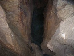 Le genre de crevasse où est tombé notre ami spéléologue. Heureusement, ce que l'on voir en noir, au fond, c'est l'eau.