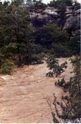 Nous avons rampé pour atteindre le sommet de cette coulée de pierres. Forcément, la violence des eaux qui s'engouffrait ici devait être terrible. Je pensais à nos équipes de soutien restées à l'arrière, qui pourraient venir nous prévenir en cas d'orage quelque part. Même à 10 ou 50km, un orage pouvait être catastrophique pour nous, les gours ne demandant qu'a déborder, du fait de l'infiltration des eaux de pluies. De plus, ici, la ruée d'une crue nous aurait empêché tout retour, on était perdu pour toujours…