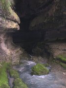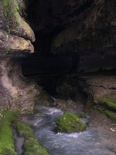 Des décharges sauvages devaient se trouver sur les plateaux environnants. L'eau entraînait n'importe quoi sur son passage. En entrant dans cette grotte, je voyais des troncs d'arbres coincés dans les rochers. Des vieux pneus de voitures, ou de camions, non moins coincés dans des anfractuosités. Le plus spectaculaire était cette machine à laver (ou était-ce une cuisinière ?) que j'apercevais, encastrée dans la voûte rocheuse, 15 mètres au dessus de nous !!