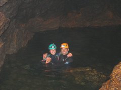 Samuel et Patrick en amont du siphon Bournier, par JL. Galera