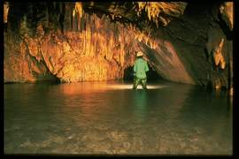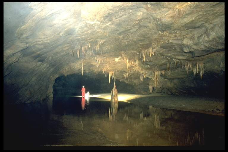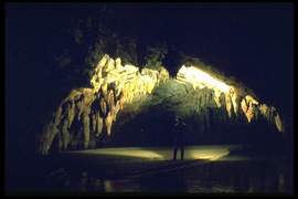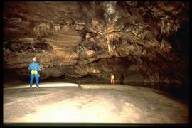ETE 1995 Une exploration jusqu’au siphon S4 laisse apparaître un violent courant d’air. Ce passage latéral soufflant nous intrigue et fera l’objet d’une expédition les années suivantes. ETE 1997 Le franchissement du siphon 5 sera une formalité après un recreusement des sables qui bloquent un petit chenal de plafond. L'exploration va nous mener jusqu'à la cote 5871m, point de confluence de 2 affluents qui se terminent sur siphon à respectivement à 6076 m et 7791 m. La topographie de 8544 m sera réalisée complètement. Mr Nikos IOANINIS réalisera la totalité de l'exploration lors de nos travaux de topographie. Une aide locale nous viendra du représentant du canton Mr LEFTERI, Maire de KOKINOIA . L'hydromètrie, la chimie et la thermométrie viennent en complément des expériences de traçages menées lors des campagnes précédentes. |