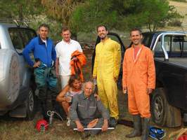 | ETE 2003 Après une série de reconnaissances du bassin, les conditions hydrologiques ne vont pas permettre de réaliser tout le programme prévu. L’équipe de spéléologues Franco-grecque poursuit les explorations. Les pertes seront noyées par des crues et des pluies importantes.