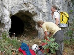 Pas le temps de souffler, le lendemain, une reconnaissance de "La Babuna" est au programme. Cette fois, autant le dire tout de suite, c'est la nature qui aura le dessus. Nous carbonisons nos rares porteurs dans la difficile marche d'approche et parvenons tous éreintés devant le porche.